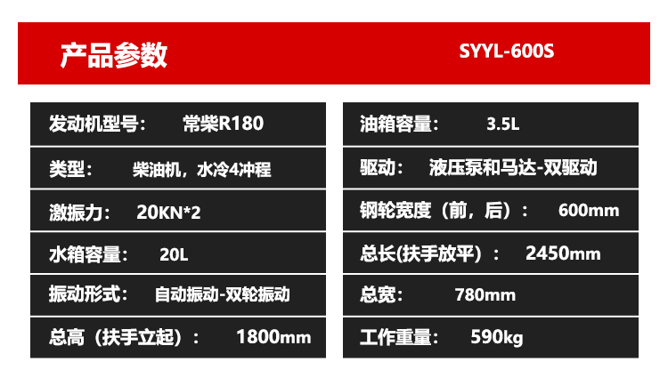 SYYL-600S雙鋼輪(水冷柴油)手扶壓路機(jī)